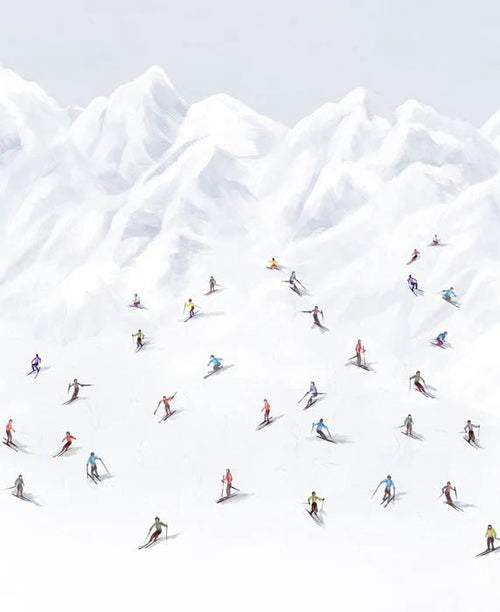 Papier peint montagne skieurs colorés
