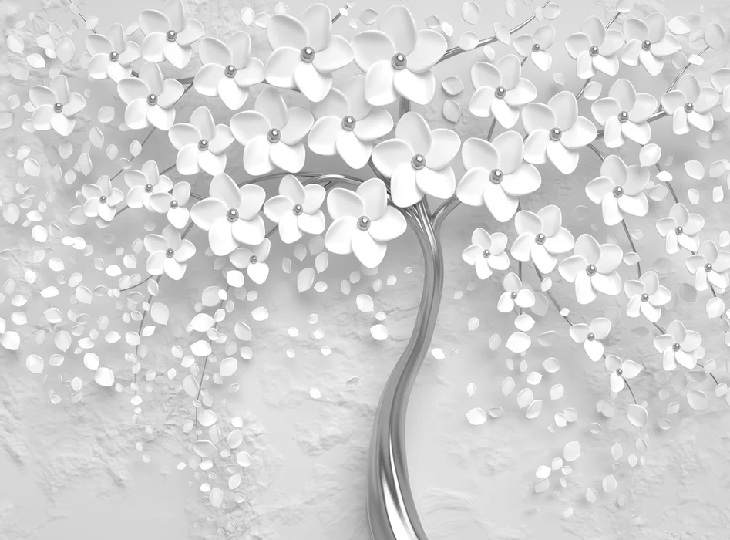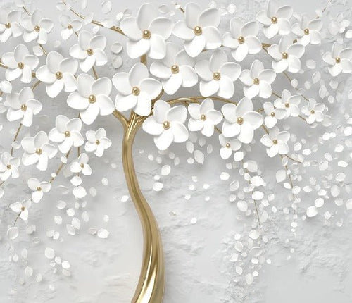 3D trompe l'oeil flowering tree panoramic wallpaper