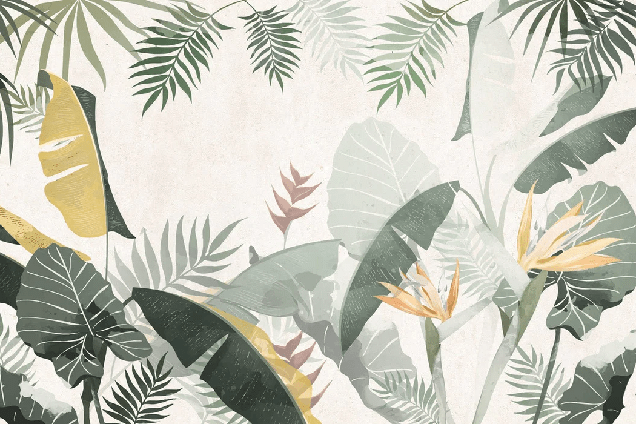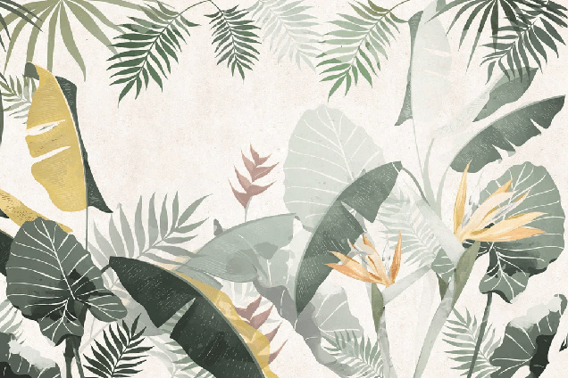 Tropical sepia bathroom wallpaper