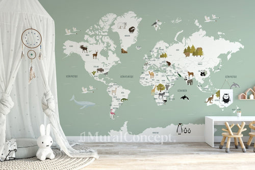 Wallpaper Illustrated world map Duck blue animals W352cm x H253cm