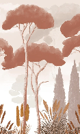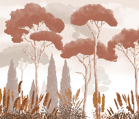 Terracotta cypress, pine and pampas grass wallpaper