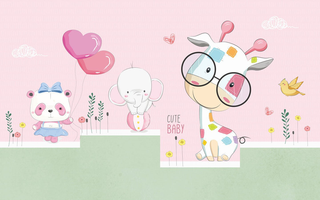 Your child will be captivated by this beautiful panoramic giraffe wallpaper, with its pastel colors and GIRAFE theme. It's bright and slightly glittery. This wallpaper will brighten up your child's or baby's room. Without a doubt, this wall decor will transport your child to a magical world! Easily create a dream interior with our custom-made mural!