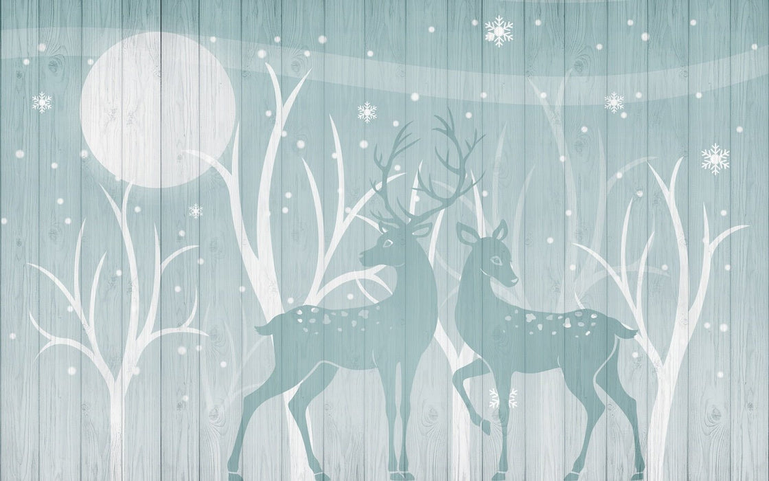 Trendy blue forest deer wallpaper