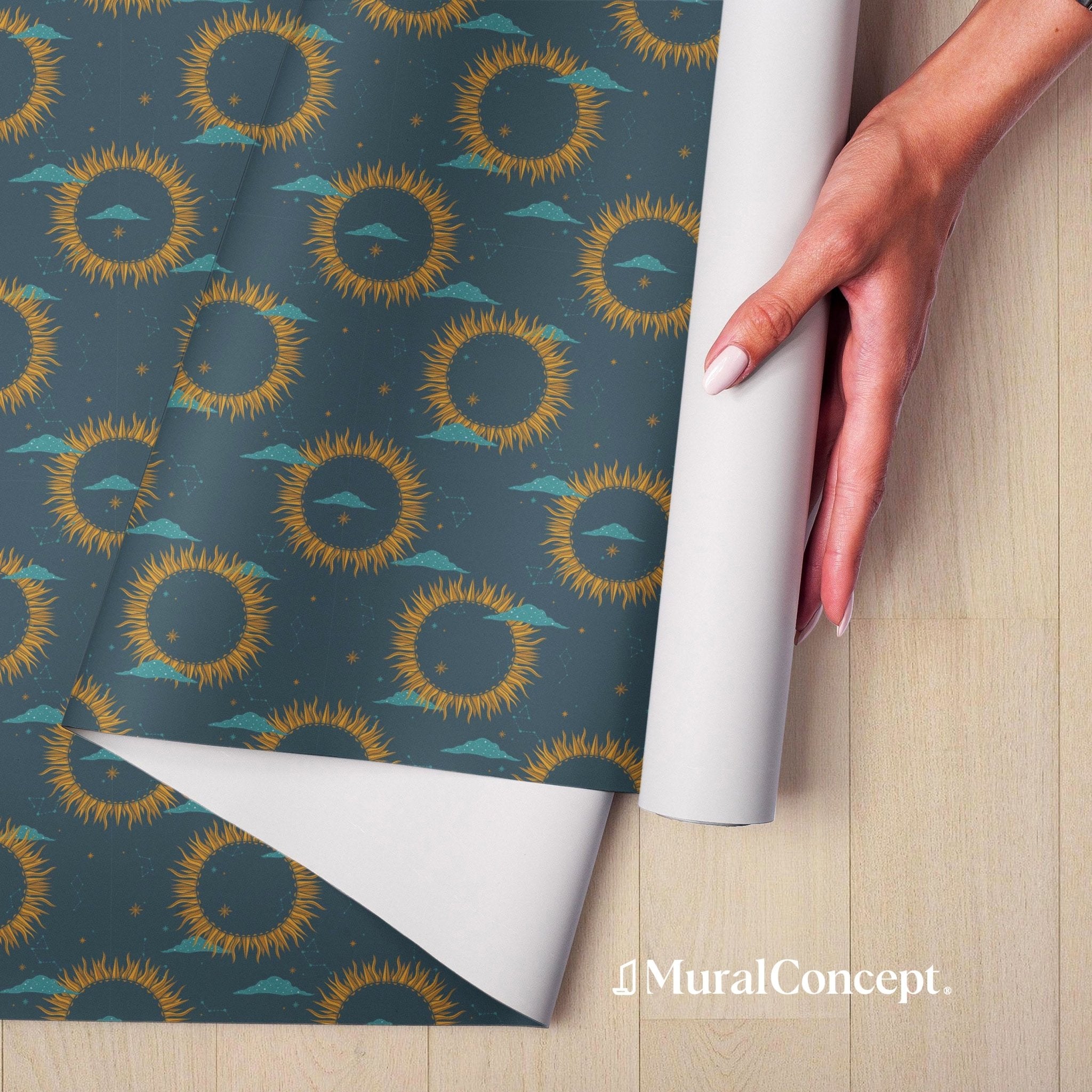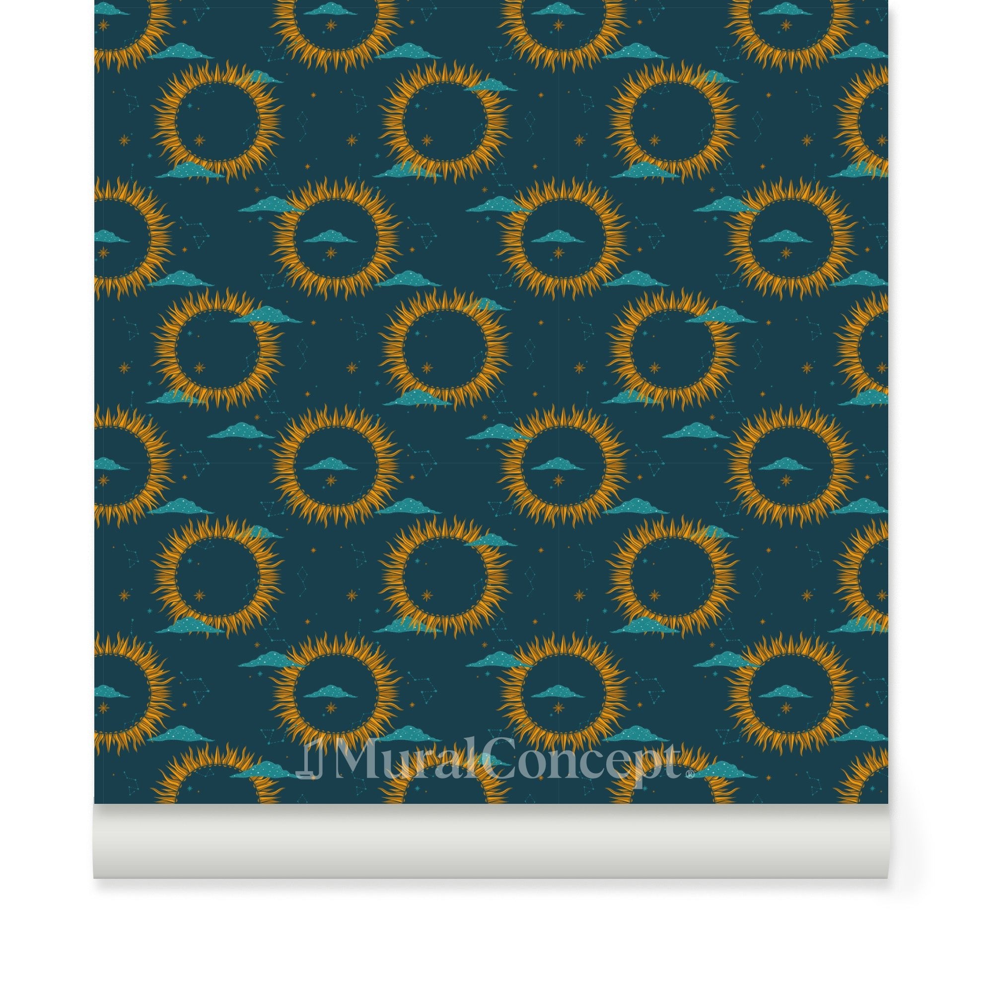 Discover this celestial sun wallpaper. This sun motif roll wallpaper will enhance any room in your home! In the bedroom, hallway, living room or toilet, this non-woven roll wallpaper is perfect. Admire the beauty of the sky with this sunny roller wallpaper.