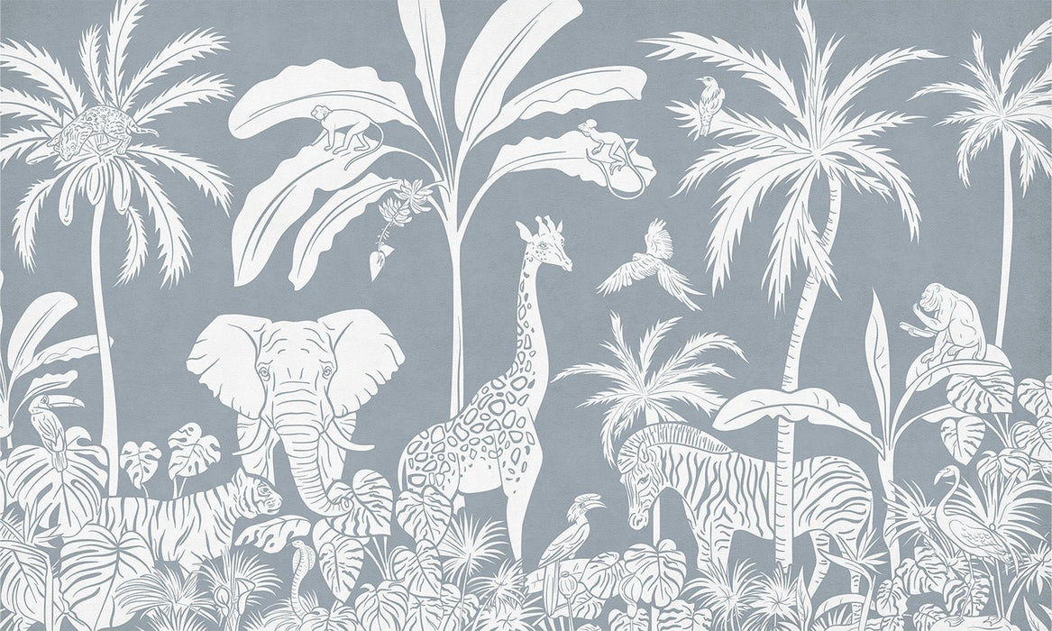 The blue monochrome safari children's wallpaper is a soft and endearing wall decoration. Perfect for decorating your baby's or toddler's bedroom, this blue children's wallpaper lets your children discover the beauty of savannah animals. Its beige color softens the atmosphere to soothe your child and make it easier to fall asleep. Discover the world of savannah animals with your family, with a pretty panoramic wallpaper designed just for your baby. Thanks to your new baby wall decor, you'll be able to tell beautiful illustrated stories!