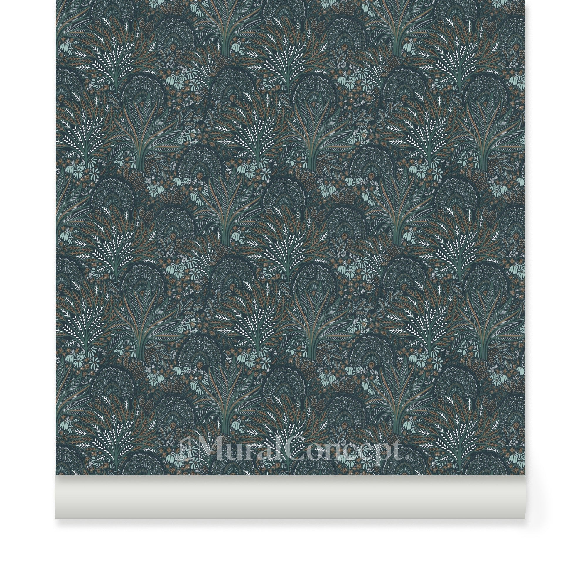 Let yourself be carried away by the blue of this vegetal peacock wheel wallpaper. A bespoke wallpaper with exquisite, meticulous detail, for a sophisticated, chic interior design. This panoramic non-woven wallpaper will fit perfectly into your interior, creating a charming and charismatic ambience.