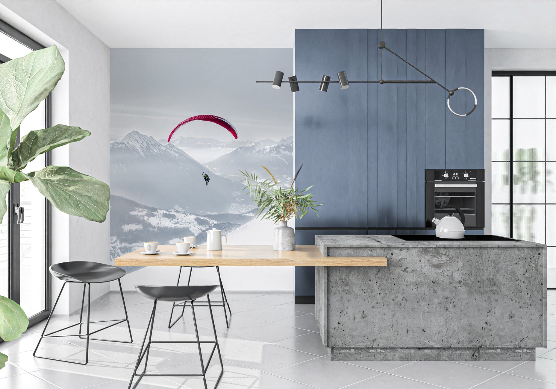Do you love the mountains and want to create an inspiring atmosphere? The fly in the Alps mountain photo wallpaper invites you to get away from it all.