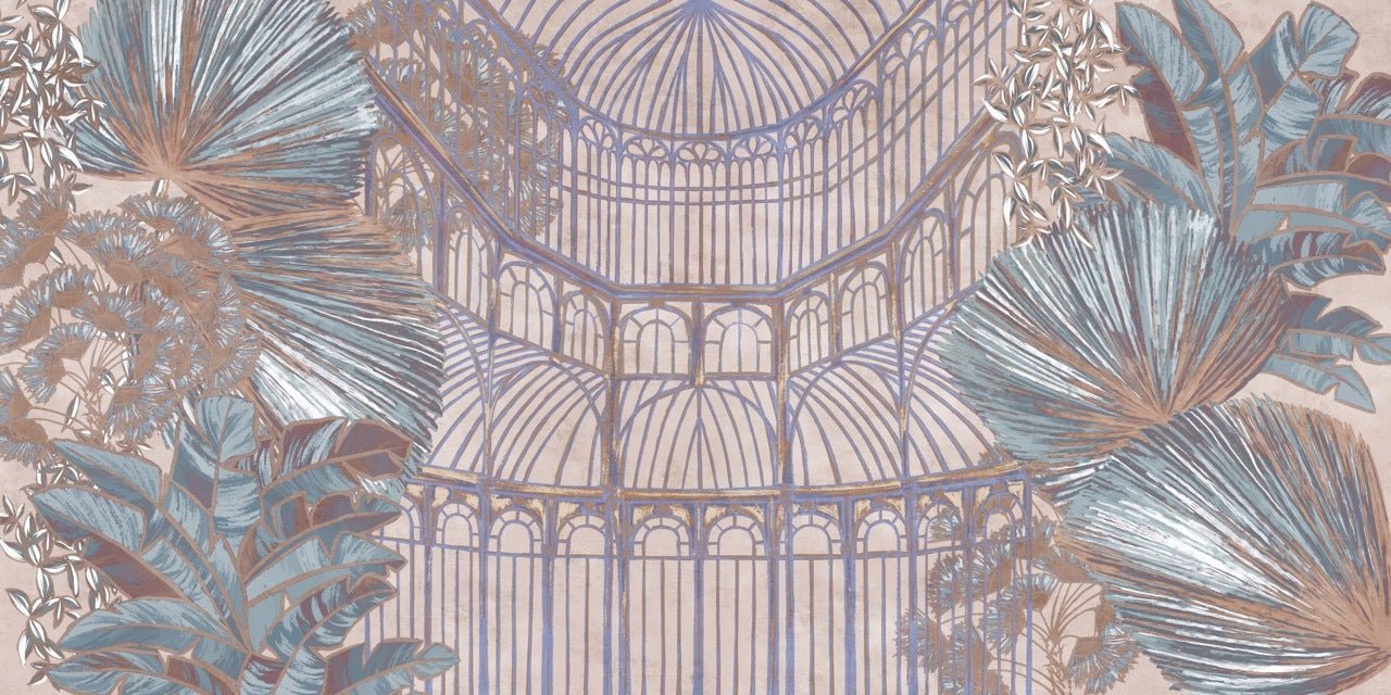 Discover the beauty of the outdoors in your own home with the verrière végétale wallpaper. This sumptuous wallpaper plunges us into a new temporal space that will take your mind on a journey. A trompe l'oeil panoramic fresco, this verrière wallpaper lets you visually enlarge the space in your room. This made-to-measure wallpaper enhances large-scale walls, and adds dimension to standard or small walls in need of a boost.