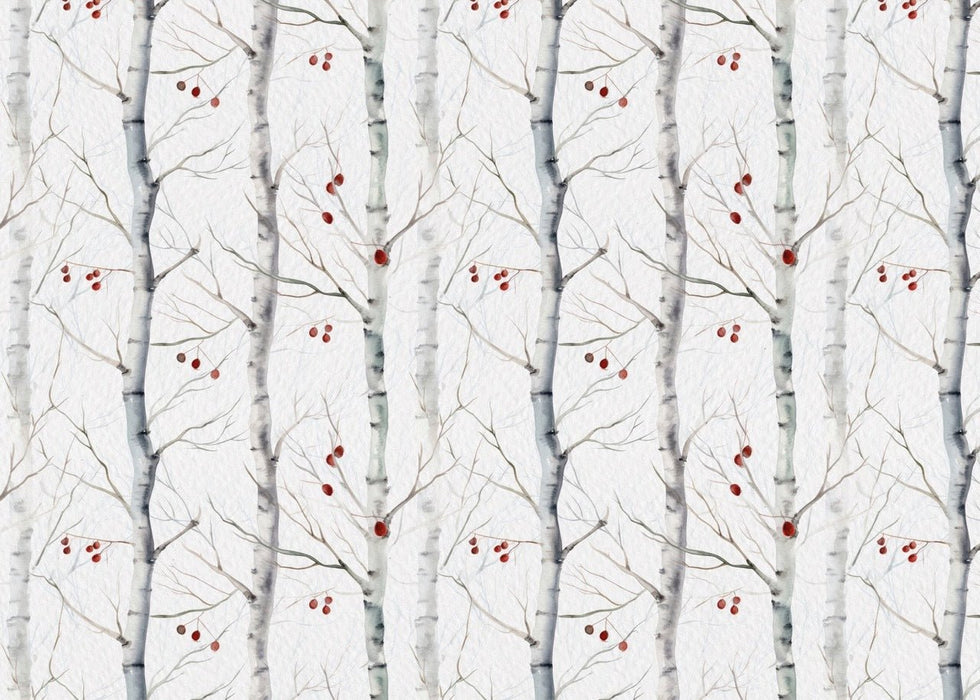 This birch paint wallpaper transforms your interior in just a glance. Its painterly style gives this panoramic wallpaper a soft, delicate touch. Its textured background adds volume to your wall, while remaining discreet and refined. We love the contrast between the wallpaper's overall design and the birch's red fruits. This contrast adds a touch of originality.