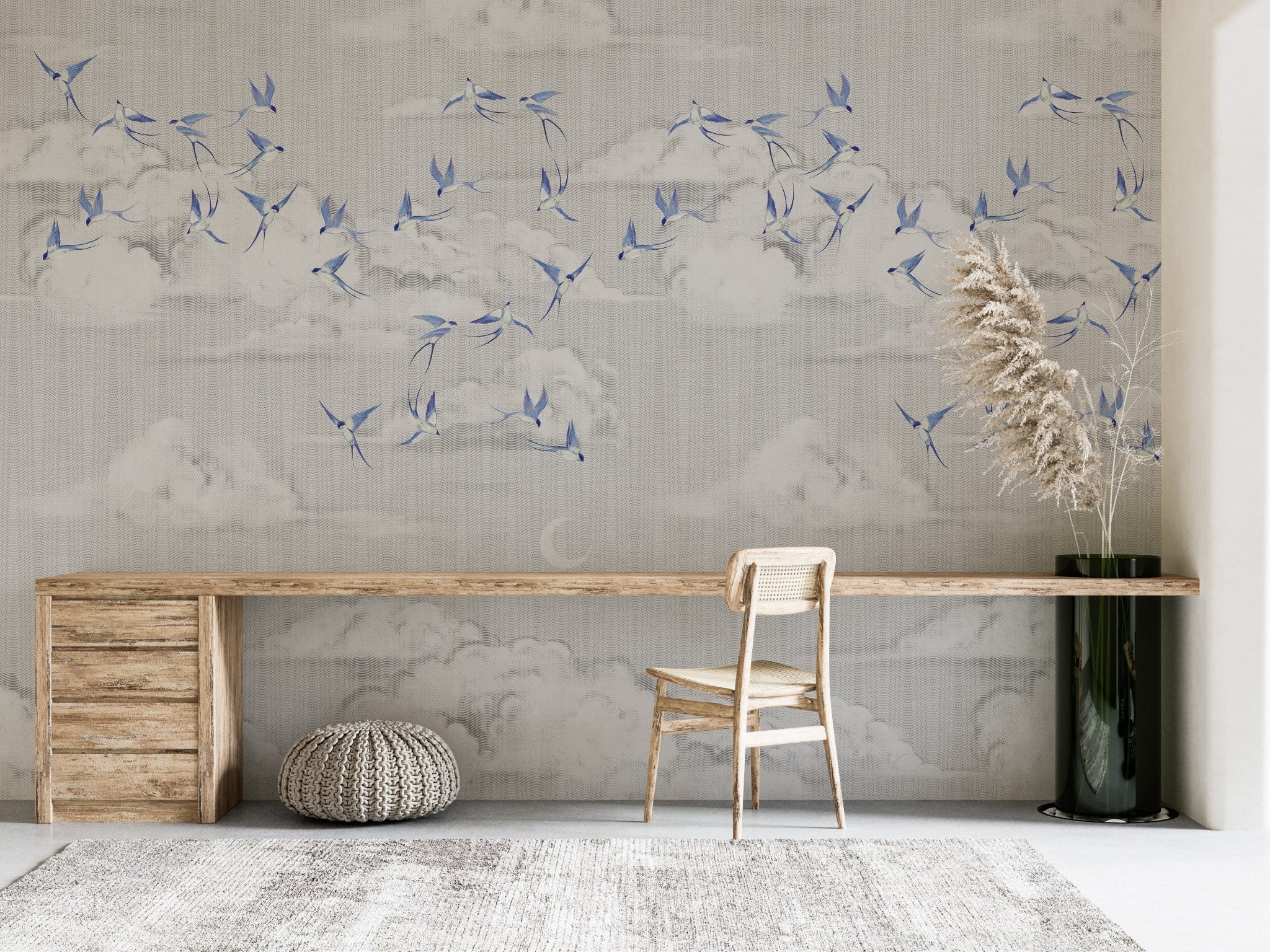 If you want to create an elegant, subtle style, this romantic wall creation is perfect. In a living room, in a bedroom (as a headboard), or in an entrance hall, in a tea room or in a hotel room, this panoramic wallpaper will bring both luminosity and a sophisticated touch to your interior. Create a dream interior with our custom-made panoramic cloud wallpaper. A contemporary wallpaper exclusive to MuralConcept. Buy panoramic wallpaper from our online store, and have it delivered anywhere in the world.
