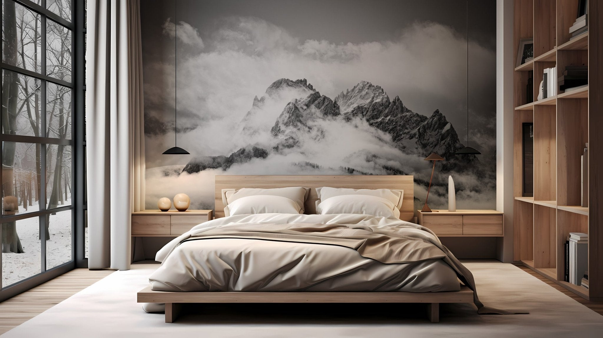 Thisblack and white "Dolomites" panoramic wallpaperis a captivating photograph that captures all the grandeur of the Italian mountains. The craggy peaks emerge from the mist, adding a mystical, ethereal touch to the scene. The subtle details of the rock, contrasted by shades of gray and black, create an impressive depth that immediately draws the eye. The mist effect diffuses a soothing, mysterious atmosphere, ideal for creating a calm, inspiring workspace, perfect for an office, professional spaces or a mountain chalet. This bespoke, panoramic French tapestry transforms any room into a true alpine retreat.