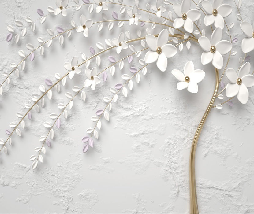 3D panoramic trompe l'oeil flowering tree wallpaper