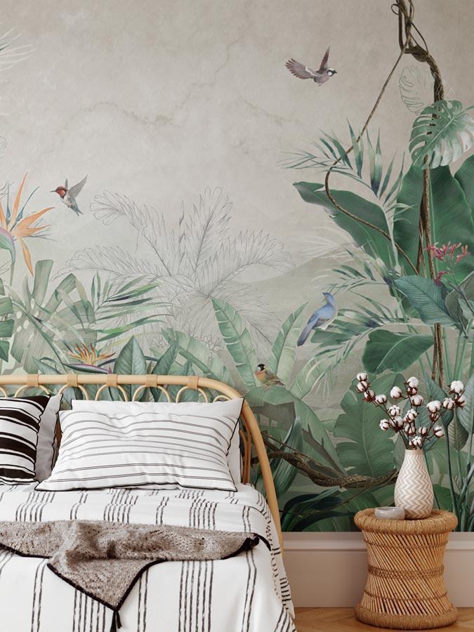 Panoramic wallpaper is the ideal choice for creating a spectacular, immersive wall. With a width of several meters, our wallpaper will transport you to the heart of the jungle, making you forget the outside world.