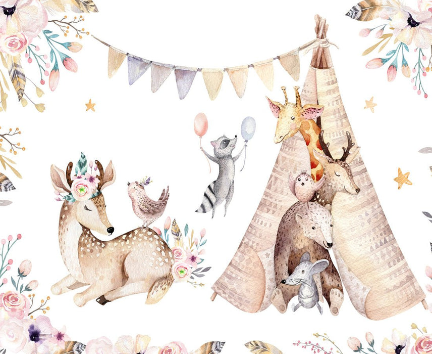 Discover our crunchy animal panoramic wallpaper for kids. A new version of our famous "douces biches" panoramic non-woven wallpaper.