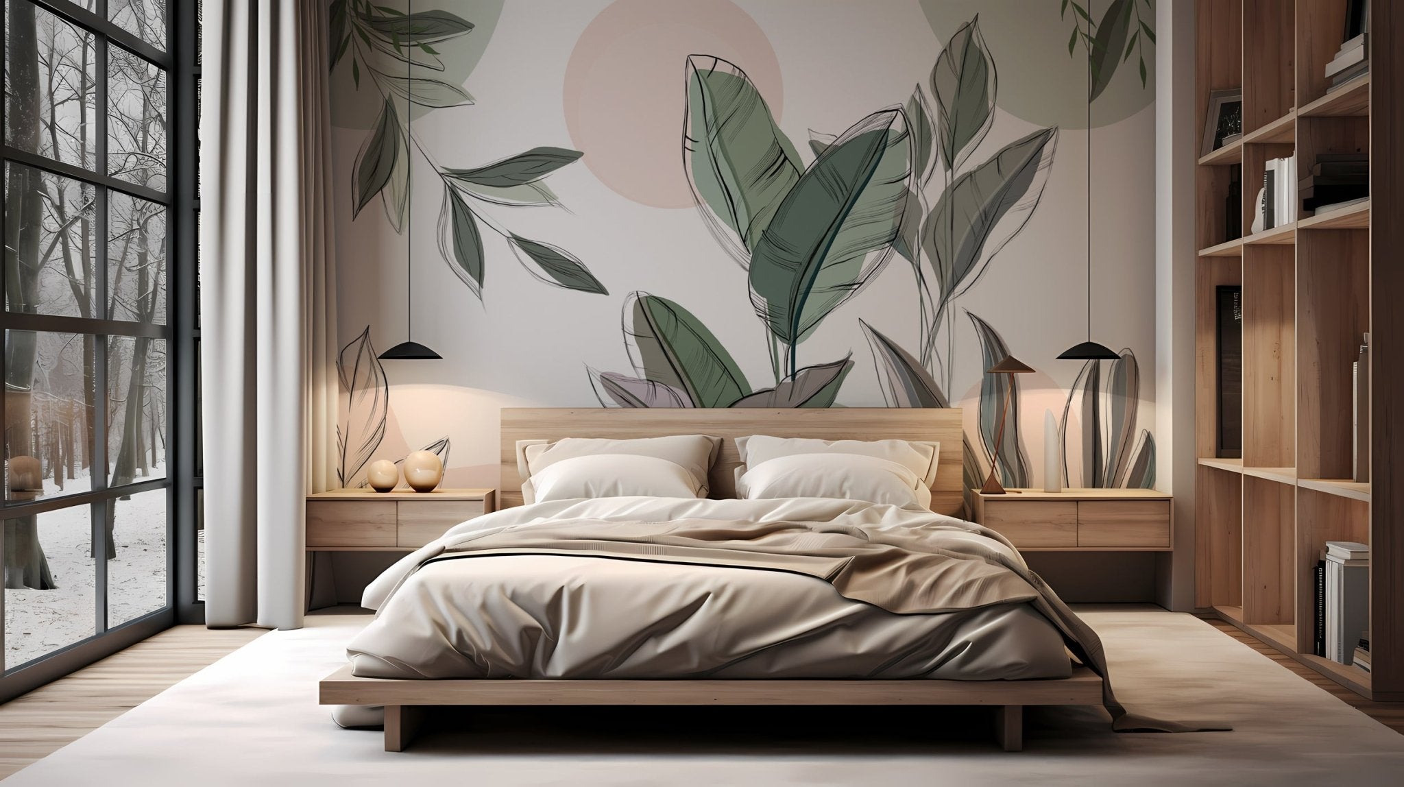This made-to-measure panoramic mural can be adapted to any wall configuration (small wall, high wall, attic wall...). Poetry, romanticism, elegance: that's the atmosphere created by our inspiring nature wallpaper. A range of pastel colors and graphic lines give it an artistic, dynamic feel. Our wall decor is both stylish and elegant.
