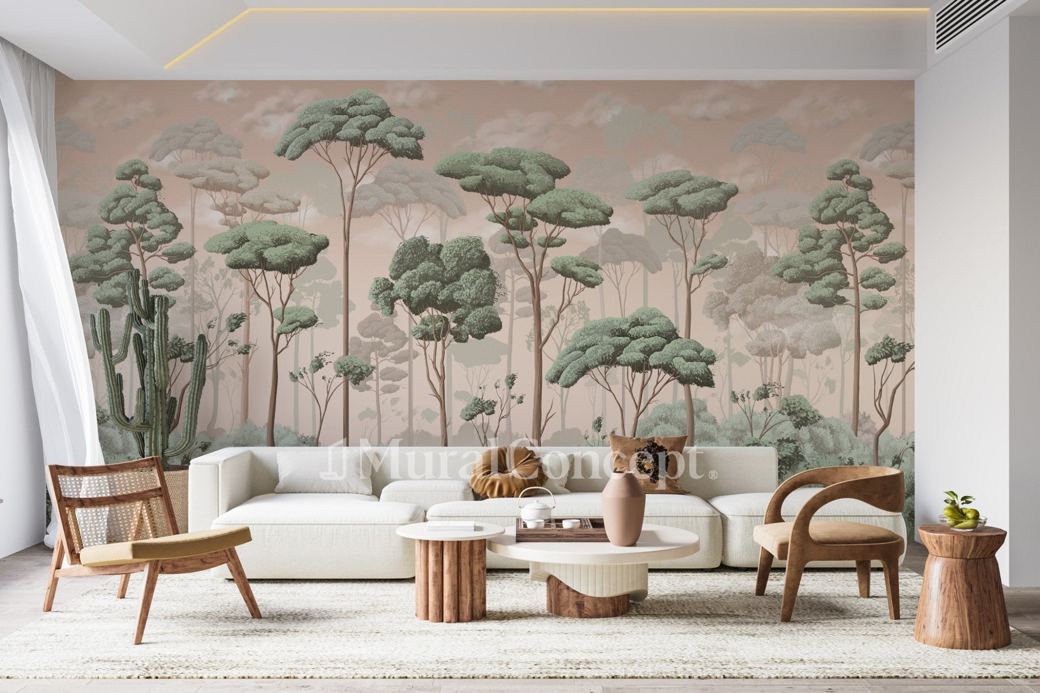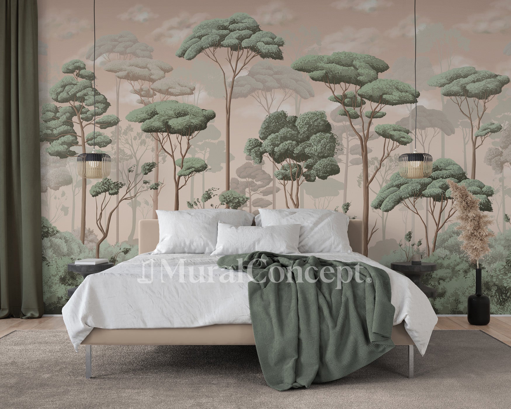 Immerse yourself in the delicate, refined world of a pine forest with our voluptuous pinewood panoramic wallpaper. This made-to-measure wall tapestry will enhance your interior. An elegant, artistic note for this painting-like wallpaper. This panoramic wallpaper will find its place in every room of the house. It's ideal for professional settings, such as hotel lobbies, guest rooms or restaurant dining rooms. Buy now your made-to-measure, French and eco-responsible panoramic wallpaper.