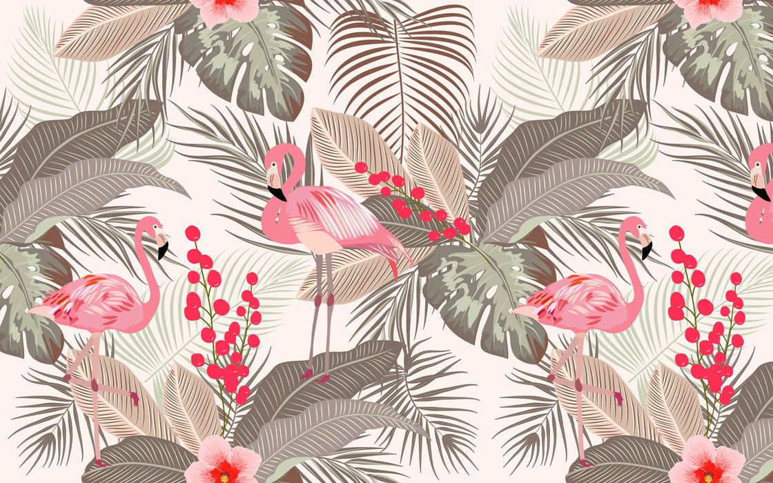 The trendy Jungle & Flamant Rose wallpaper is a fusion of the pure design of jungle motifs and the softness of watercolor. Ideal for a living room, bedroom or office, this wallpaper will add a soft, sophisticated touch to your interior.
