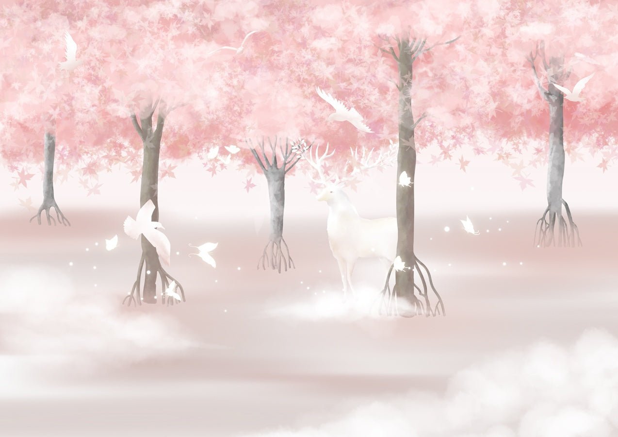 Let yourself be enchanted by our sweet dreams in the forest wallpaper. This made-to-measure wallpaper is ideal for a child's bedroom, baby's room or playroom. A soft, enchanted wall decor that will lull your child into tender stories. A healthy, eco-friendly wallpaper for your child's bedroom. Surprise yourself, because you'll be dreaming sweet dreams too! Tailor-made panoramic wallpaper to fit any wall.