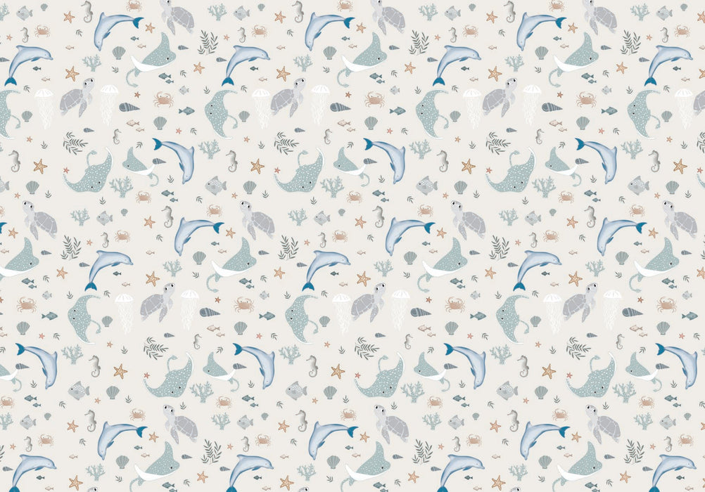 With our children's wallpaper, your child will plunge into a magical world. He'll find his favorite marine animals: the smiling turtle, the funny stingray, the mischievous dolphin and all the marine vegetation. So many companions to accompany your child through the night. The natural colors of this wall creation make it easy to match the room's decor.