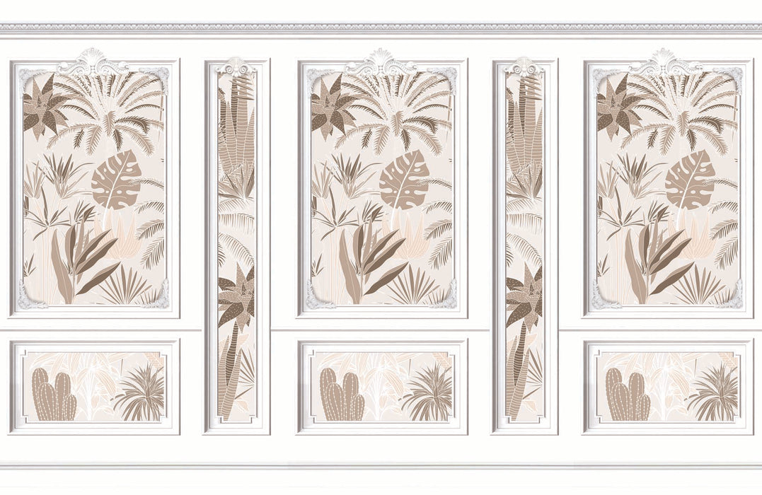 Haussmann moulure végétal wallpaper is a trompe l'oeil that will bring elegance to your interior. The realistic, grandiose motif adds a sophisticated touch. Create the illusion of the real thing with thisperfectly illustrated pattern.Vegetal and baroque create an exceptional, warm atmosphere.