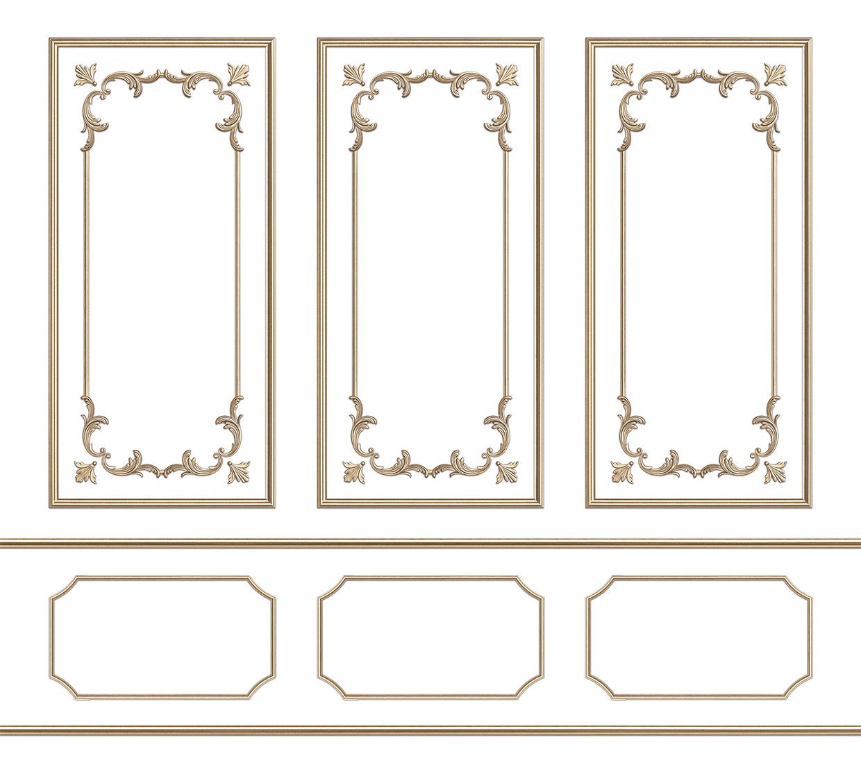 Wallpaper trompe l'oeil gilded moulding Parisian style