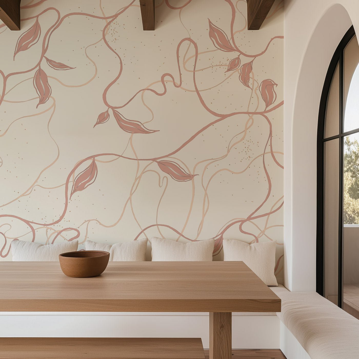 Bring a touch of natural elegance to your interior with our high-end "Plant Lines" wallpaper. Inspired by the delicacy of the plant world, this floral wallpaper with a contemporary design combines softness and sophistication. The organic patterns, intertwined with flowing lines and stylized leaves, create a soothing and refined atmosphere, ideal for a living room, dining room, or bedroom.