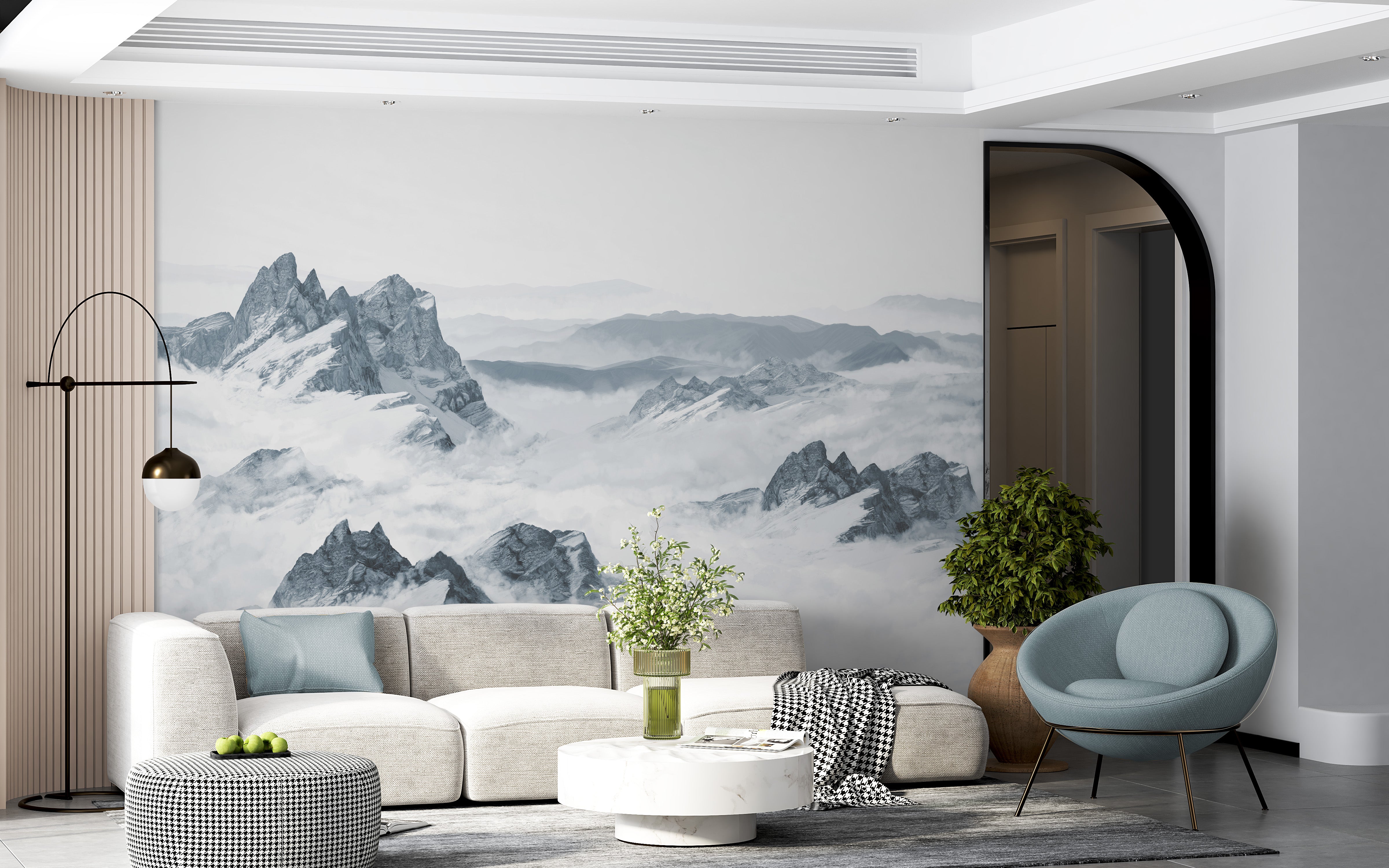 Decorate your home with panoramic mountain blue wallpaper. A wallpaper illustrated with mist, sky and birds, it's exotic and serene. This non-woven wallpaper is ideal for a bedroom, living room, kitchen or hallway. An exclusive, trendy wallpaper that will delight your eyes. Panoramic wallpaper lets you travel light without leaving home. This blue wallpaper comes in multiple shades of color, which can easily be combined with any interior design style. Wallpaper made in France. Our French wallpapers are of the highest quality. Buy your wallpaper online now. Discover our entire mountain wallpaper collection on our website.