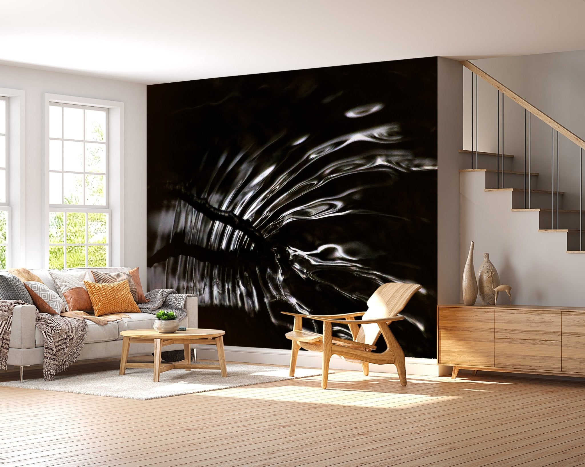 Our Heart of Water wallpaper is an artistic representation of the movement of water and the cycle of life. With its black background, this wallpaper will bring a chic, artistic atmosphere to your interior, in the same way as an art print. The atmosphere will be deeply restful.