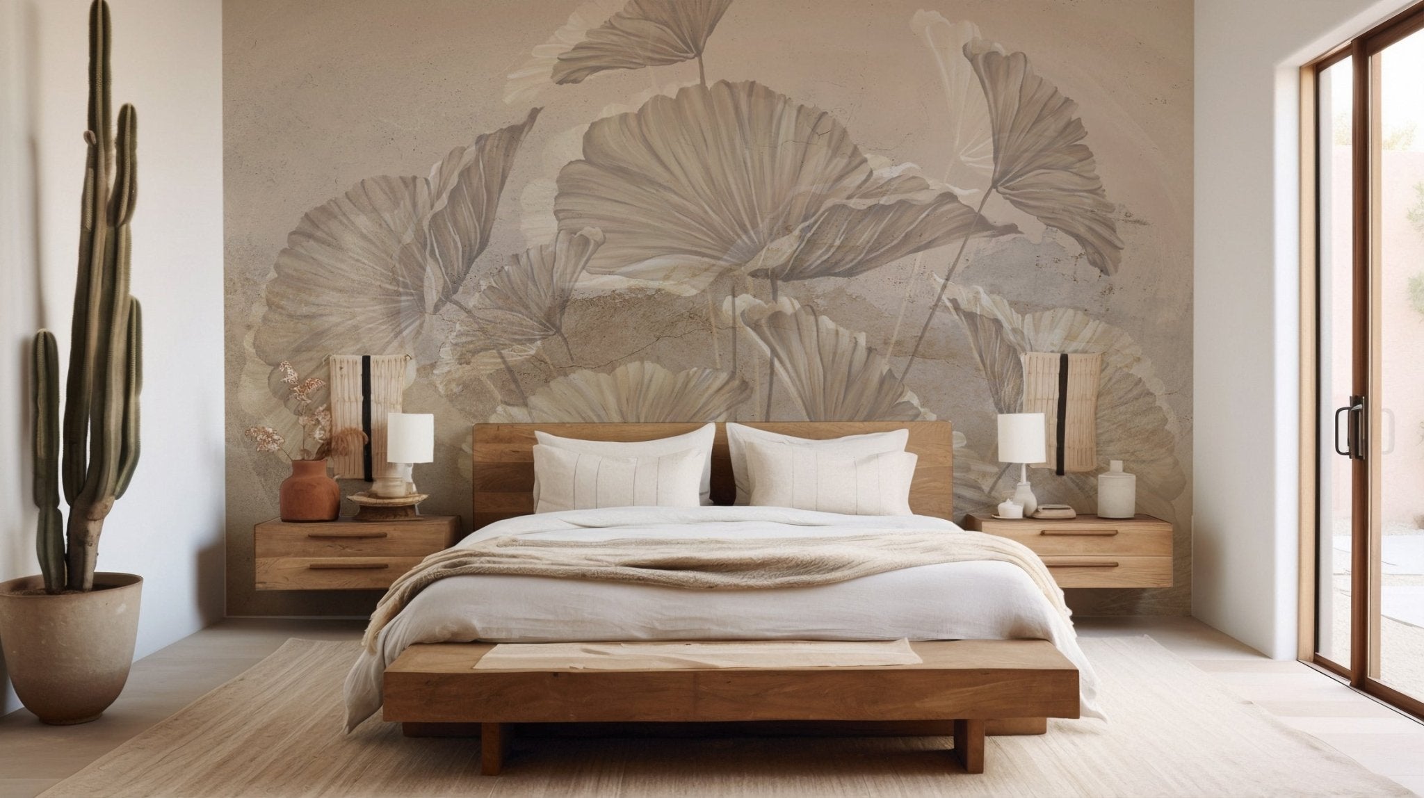 This elegant design features lotus flowers drawn with artistic finesse in monochrome sepia tones. The refined, timeless look of this wallpaper creates a soothing, sophisticated ambience, ideal for living rooms, bedrooms or offices. Its monochrome sepia palette adds a touch of warmth and depth, while remaining subtle and elegant.
