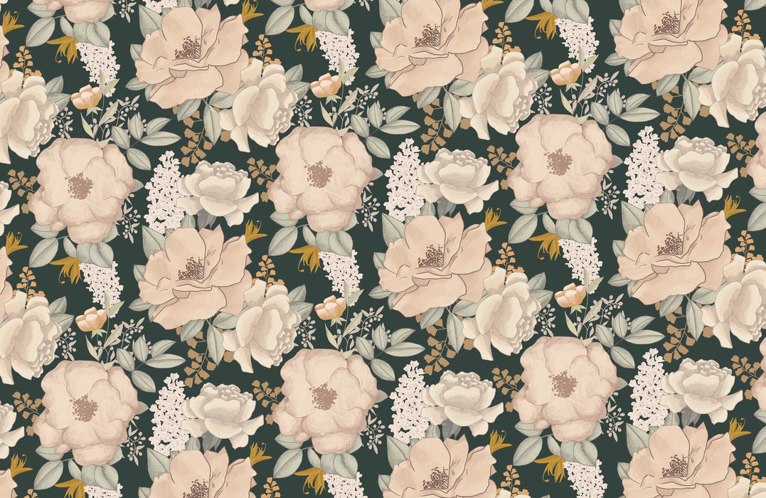 Choose this deep pastel flower wallpaper to create a chic, bucolic retro ambience in your home. In a living room, bedroom or office, this made-to-measure wallpaper will bring brightness, cheerfulness and a sophisticated touch to your decor. An ideal and original flower wallpaper to decorate your interior.