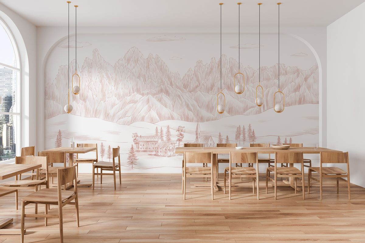 Italian landscape wallpaper Dolomites terracotta