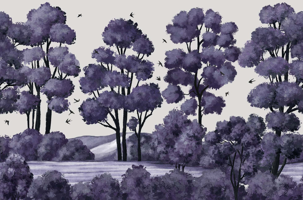 Enhance your interior with the violet forest river landscape wallpaper. This vegetal mural is ideal for adding depth to your room and transforming its dimension. The result of an artist's painting, this mural is as captivating as it is dreamy. This watercolor-style wall design depicts a pretty clearing with trees and birds. Make your walls dream with a panoramic wallpaper worthy of a masterpiece! This made-to-measure wallpaper model is available in a range of colors to suit different moods.