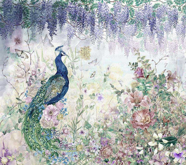 Peacock Blue Peacock Floral Panoramic Wallpaper