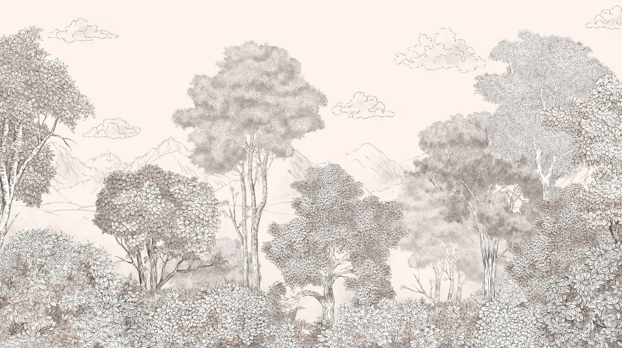 Immerse yourself in an elegant and refined wall décor with "Évasion Française - Forêts et Monts Crayonnés" Beige version of our initially black and white model, a panoramic wallpaper that revisits the tapestry of yesteryear with a modern, artistic style. Inspired by France's natural landscapes, this pattern features hand-drawn, bushy trees and majestic mountains in the background, reminiscent of ancient mural frescoes. This timelessly charming French wallpaper brings a touch of sophistication and authenticity to any space, transforming your interior into a true natural haven. Ideal for a classic yet contemporary ambience.