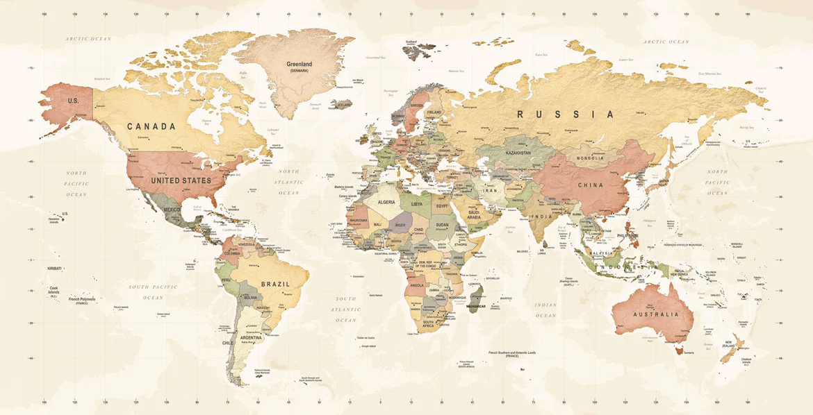 Papier peint panoramique carte du monde exploration L130cm x H80cm