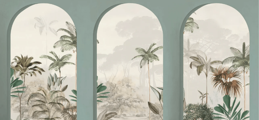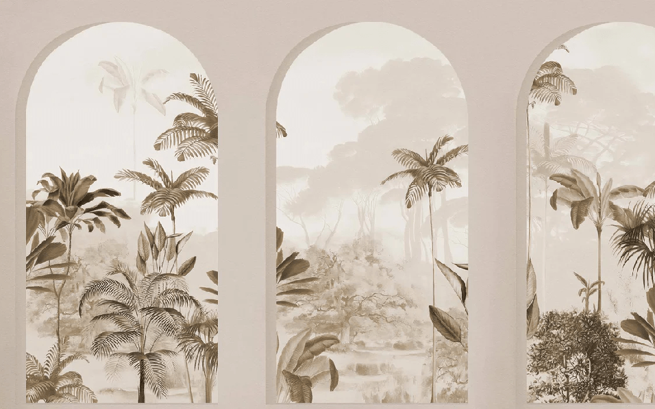 Papier peint arches tropicales sépia