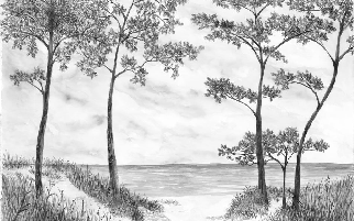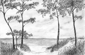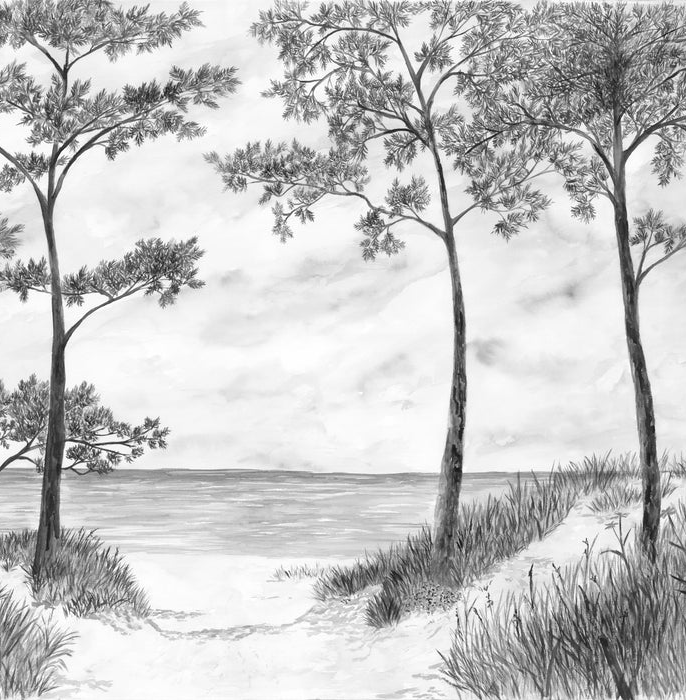 Papier peint Pins maritimes et dunes - Noir et blanc