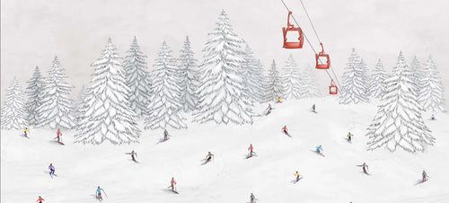 Papier peint télécabine skieurs colorés