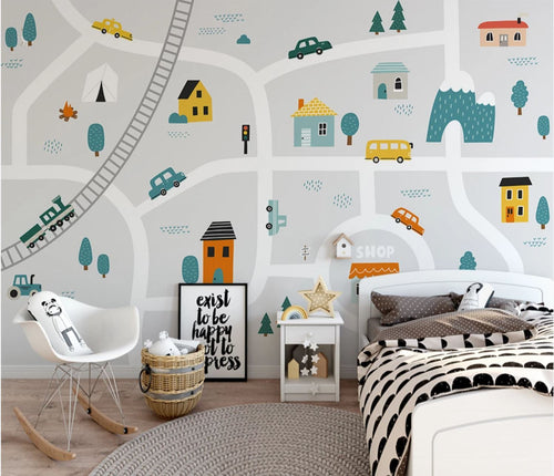 Papier peint enfant circuit automobile