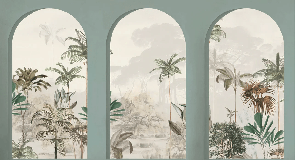 Papier peint arches luxuriantes vert