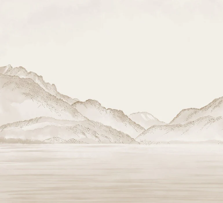 Papier peint lac Annecy sépia - Relief Pointillé