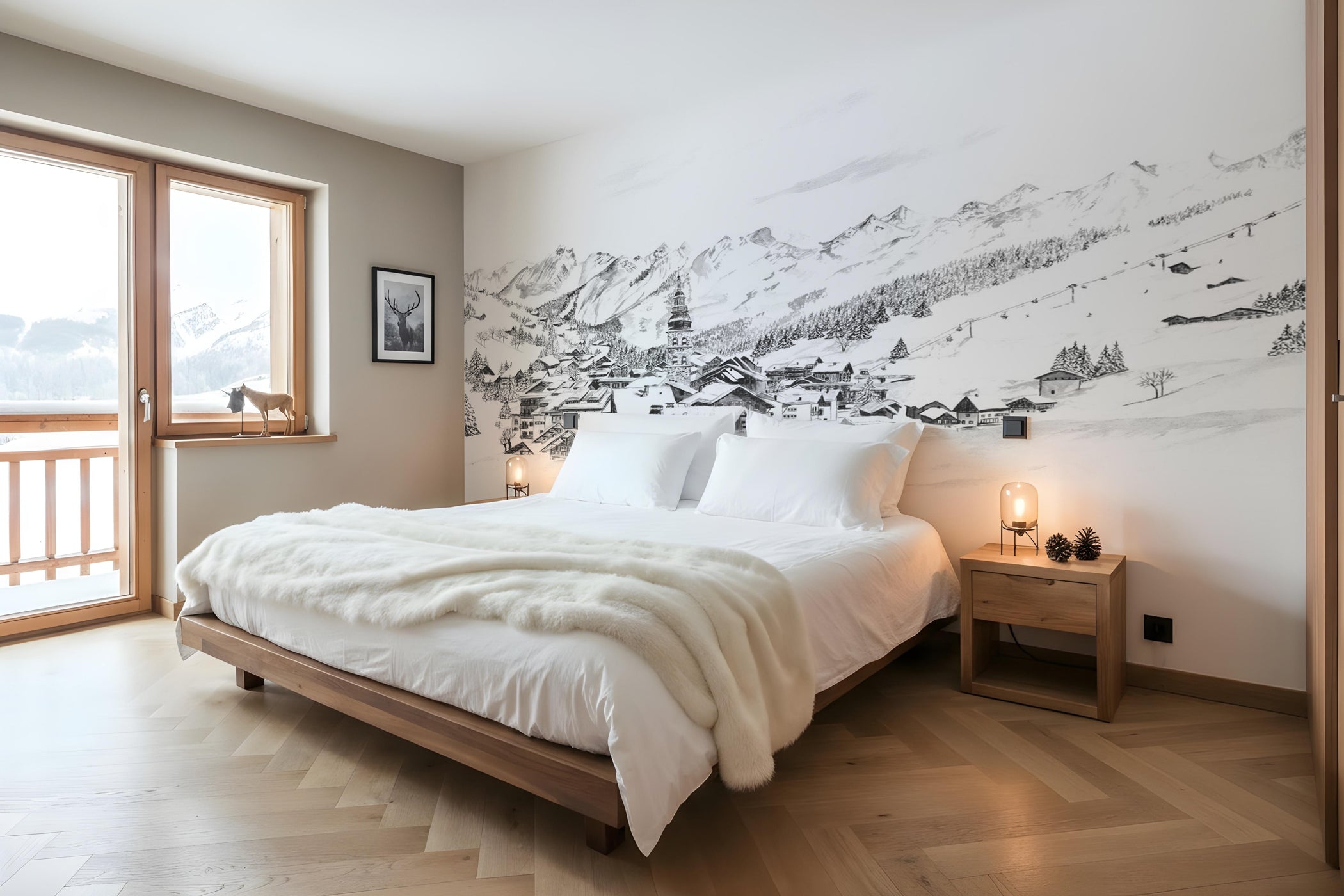 Sublimez votre intérieur avec ce papier peint panoramique montagne d’exception, inspiré du décor emblématique de La Clusaz, l’une des plus belles stations des Alpes françaises. Cette fresque murale grand format révèle un paysage alpin majestueux : chalets savoyards, toits enneigés, reliefs lumineux et la silhouette raffinée de l’église traditionnelle, le tout illustré avec une précision artistique remarquable.
