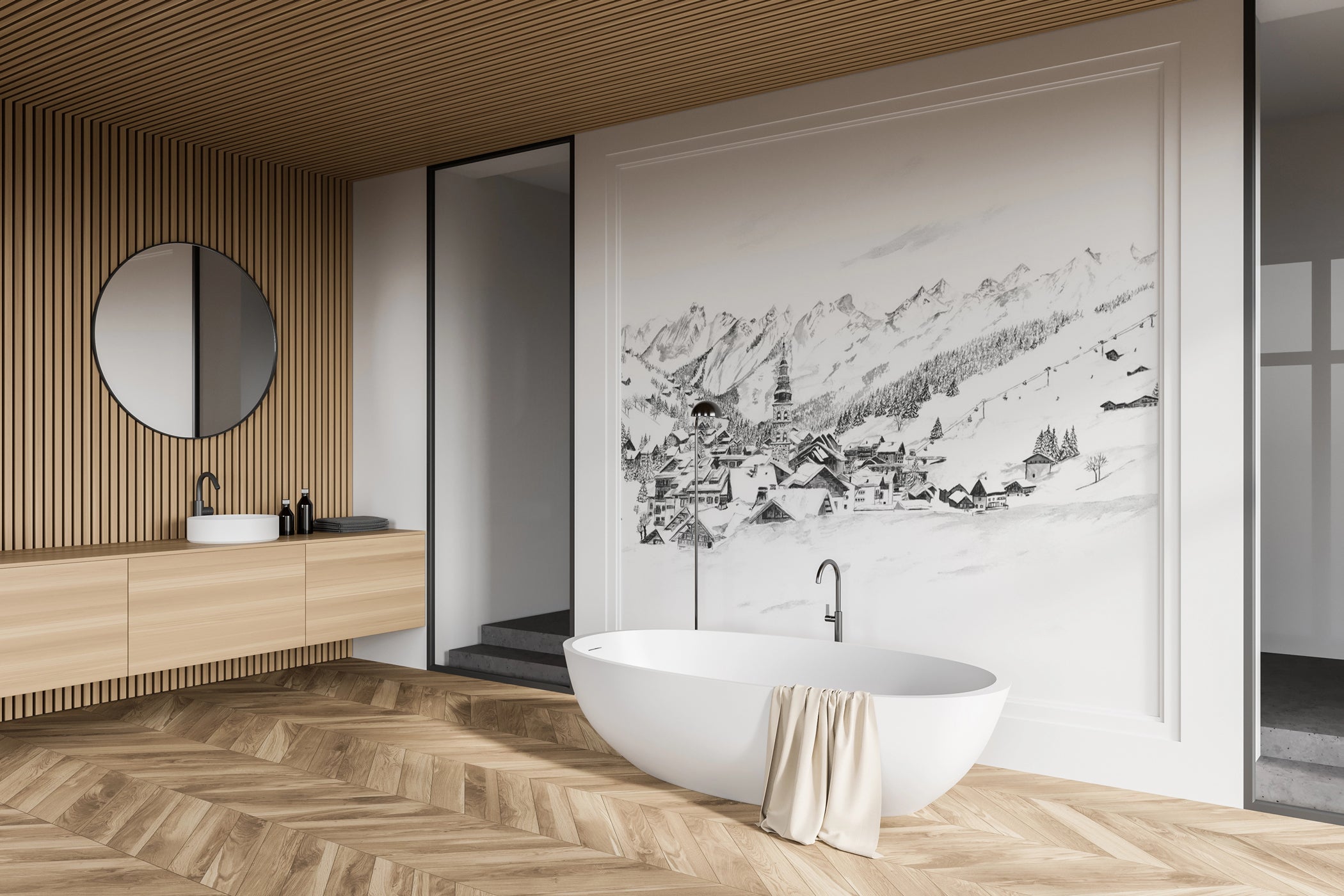 Ce papier peint paysage alpin n’est pas une simple tapisserie décorative : c’est une véritable œuvre murale conçue pour transformer vos espaces. Grâce à son rendu artistique premium et à son format panoramique, il habille avec élégance :
