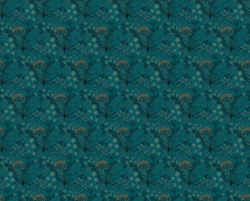 Papier peint salle de bain essence végétale bleu canard