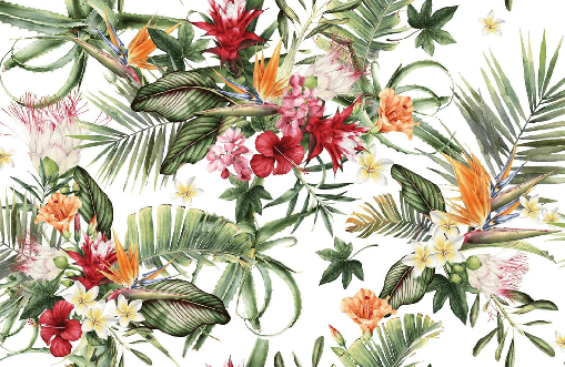 Papier peint tropical & Fleurs colorées