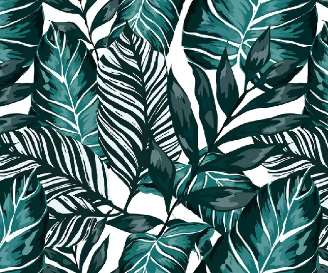 Papier peint intissé feuille couleur bleu paon