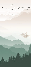 Papier peint montagne dans brume terracotta