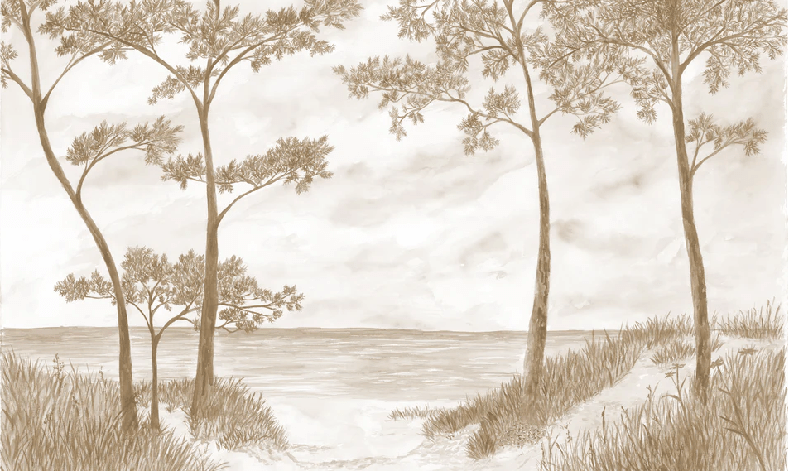 Papier peint Pins maritimes et dunes - Sépia