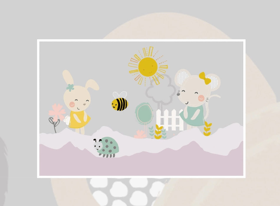 Bring softness and tenderness into your child's bedroom with this baby mouse bee wallpaper, in soft, soothing Scandinavian tones. The tender watercolor motifs will captivate your child. Suitable for babies and slightly older children. Easily create your child's own imaginary world in his or her own reality.
