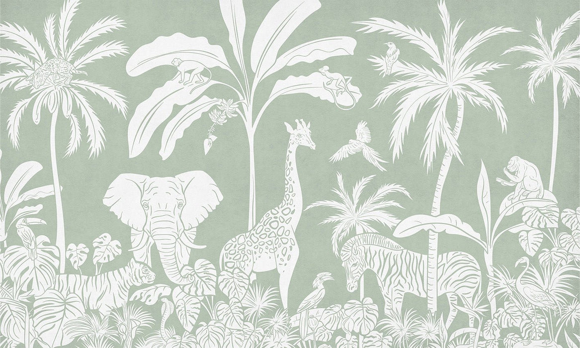 Le papier peint enfant safari monochrome vert est une décoration murale douce et attendrissante. Parfaite pour décorer la chambre de votre bébé ou de votre enfant, ce papier peint enfant vert pastel fait découvrir à vos enfants la beauté des animaux de la savane. Sa couleur vert adoucit l'atmosphère pour apaiser votre enfant et faciliter son endormissement. Découvrez en famille l'univers des animaux de la savane avec un joli papier peint panoramique pensé pour votre bébé. Grâce à votre nouvelle décoration murale bébé, vous conterez de belles histoires illustrées ! Girafe, éléphant, zèbre, oiseaux exotiques : parcourez en safari l'univers enfantin de la savane.